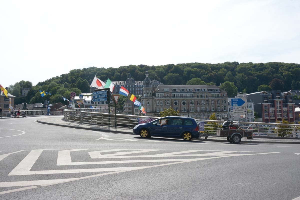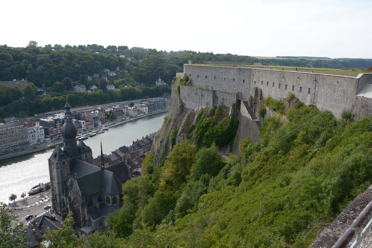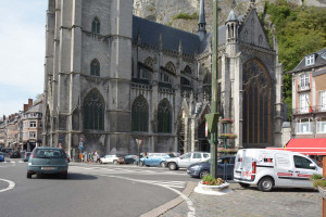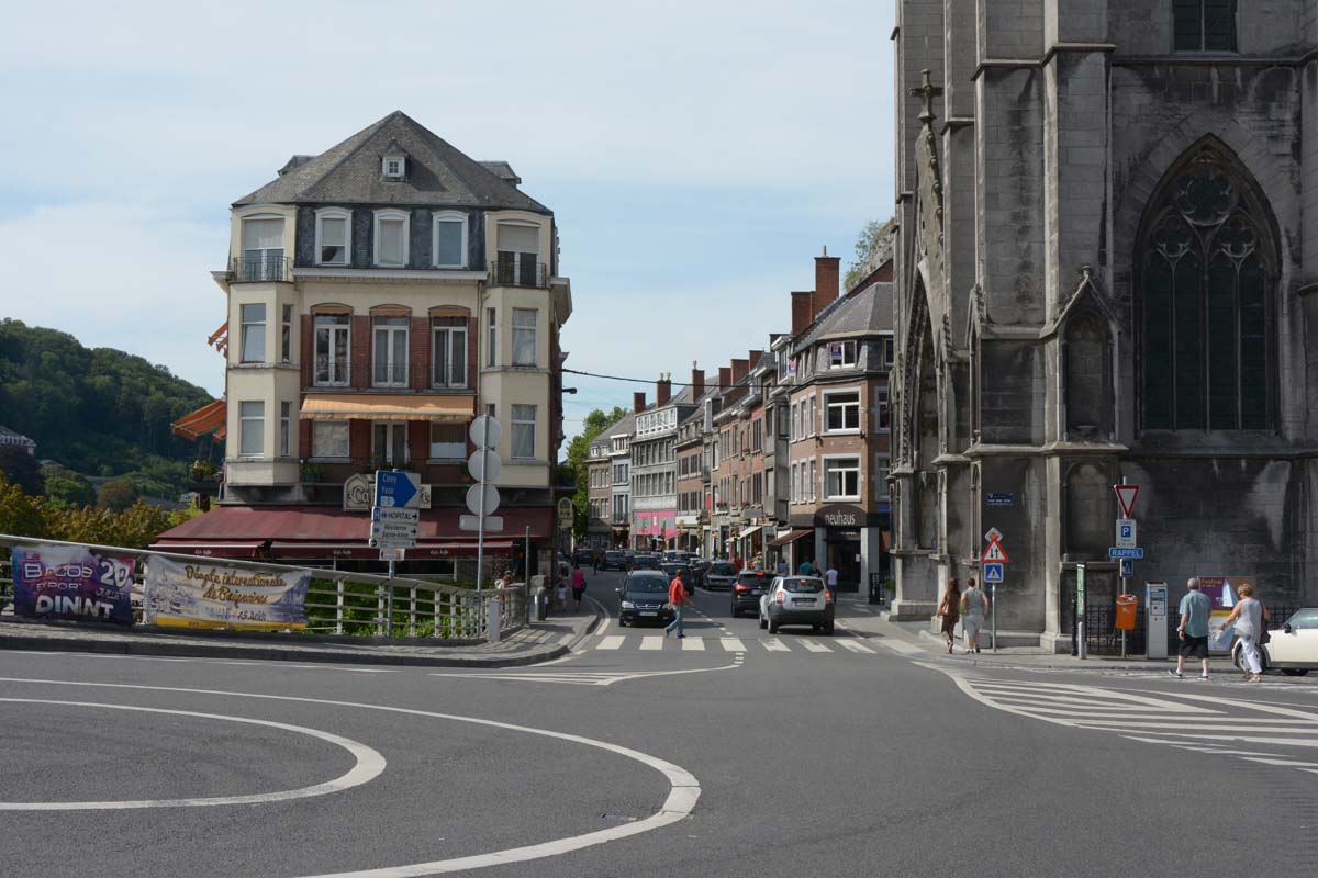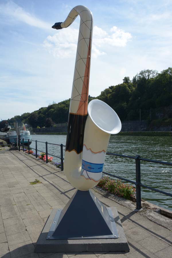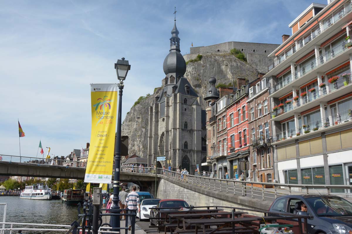 Dinant is a Walloon city and municipality located on the River Meuse, in the Belgian province of Namur. Dinant is positioned in the Upper Meuse valley, at a point where the river cuts deeply into the western Condroz plateau. Sited in a steep sided valley, between the rock face and the river. The original settlement had little space in which to grow away from the river, and it therefore expanded into a long, thin town, on a north-south axis, along the river shore. The city's landmark is the Collegiate Church of Notre Dame de Dinant which has a central tower with a famous onion dome and facetted multi-staged lantern. The house of Adolphe Sax, inventor of the saxophone is located in the street of the same name.