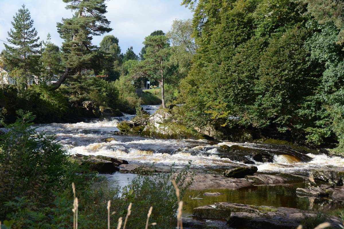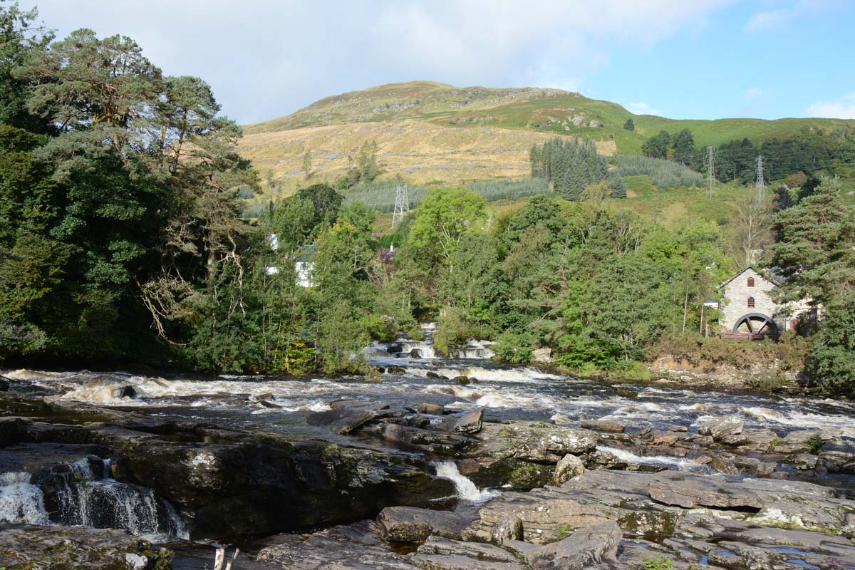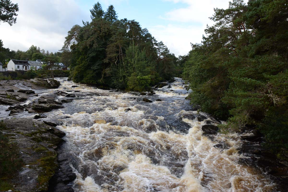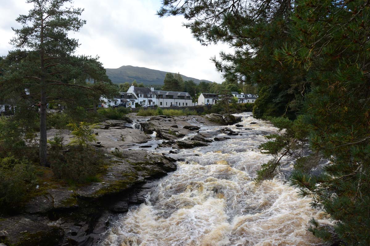 Killin is a village situated at the western head of Loch Tay. The west end of the village is magnificently sited around the scenic Falls of Dochart, the main street leading down towards the Loch at the confluence of the rivers Dochart and Lochay.